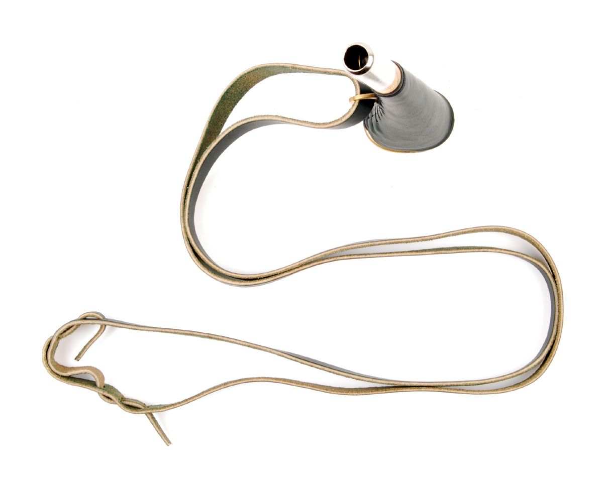 Das kleine, belederte Signalhorn für den Jäger mit kräftigem Ton passt in jede Jackentasche; kann mit Ledertragriemen auch bequem umgehängt werden. Dank der Belederung keine Geräusche. beledert mit Ledertragriemen
